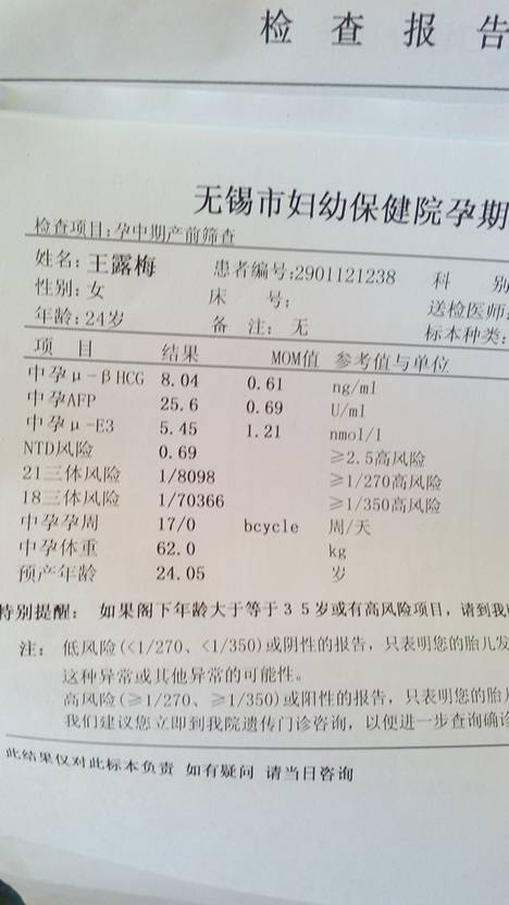 我做的唐氏筛查结果出来了,就问我了我老公什么血型!让我老公验血!好怕!!!