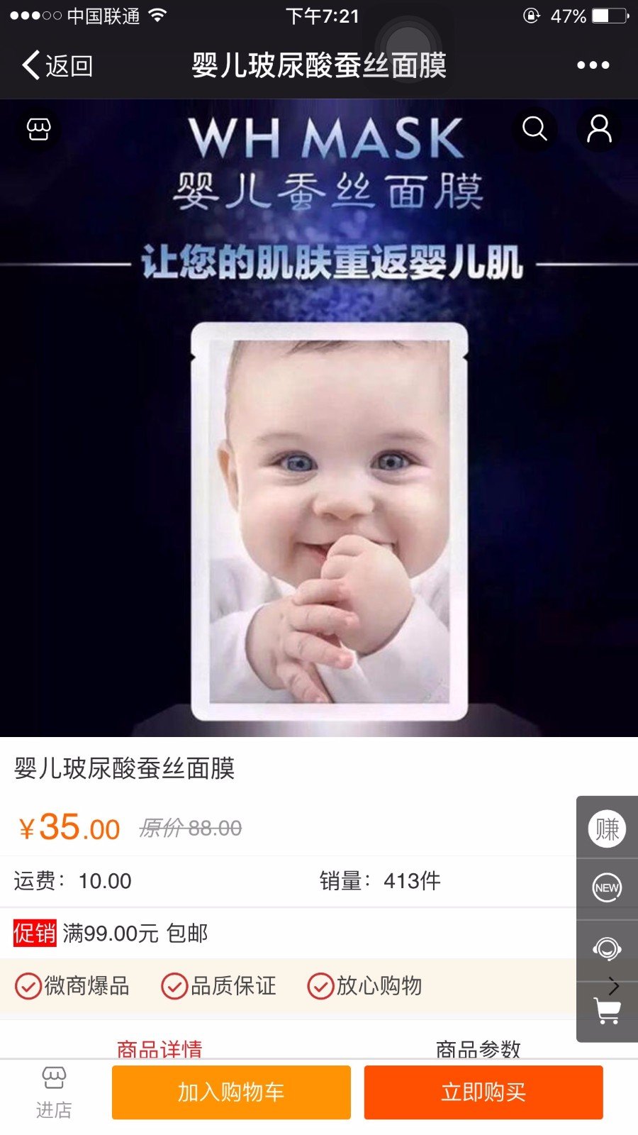 婴儿玻尿酸蚕丝面膜在爆品购上既然这么便宜,我要疯了,以前花了好多冤枉钱 点击展开 匿名用户 2016-08-25 19:23 推荐回答 假的吧,婴儿面膜没有跟任何平台合作 匿名用户 2016-08-25 20:07 宝宝知道提示您:回答为网友贡献,仅供参考。 相关问题 玻尿酸天然婴儿蚕丝面膜拿代理什么价 孕22周能用玻尿酸蚕丝面膜吗 怀孕了可以用8杯水蚕丝多重修复玻尿酸保湿补水面膜