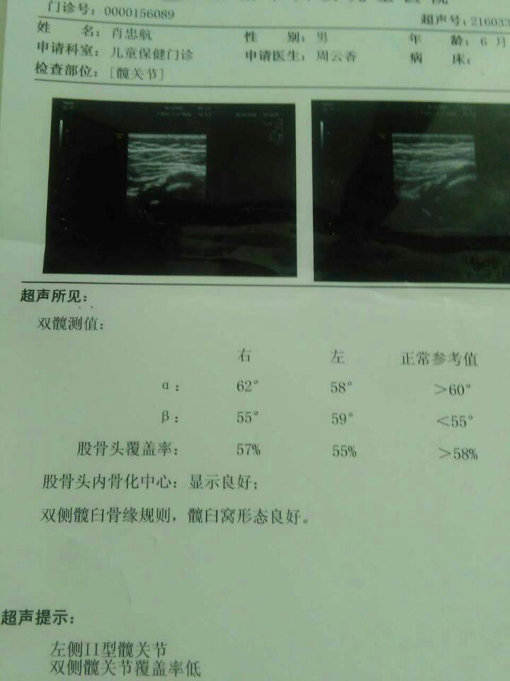 你好宝宝两腿看起来不一样长短,大约相差半公分这是b超报告单,请问需要怎么治疗