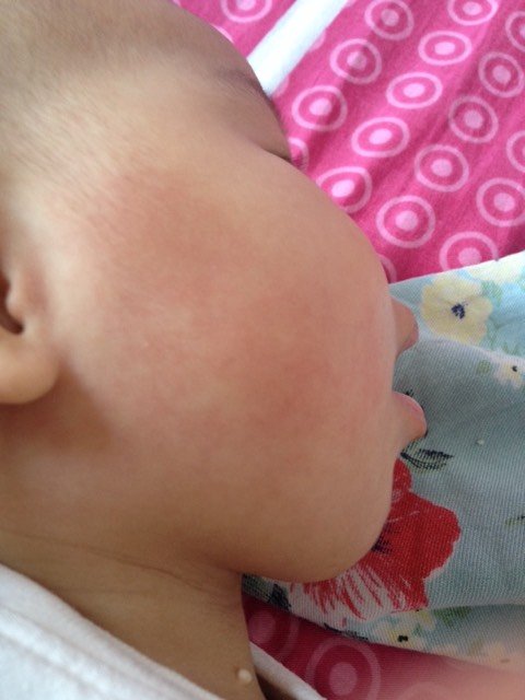 宝宝快三个月了,原来脸上起了点湿疹还有点红血丝的感觉,涂了点药好了,今天突然右脸起了一片,请问什么