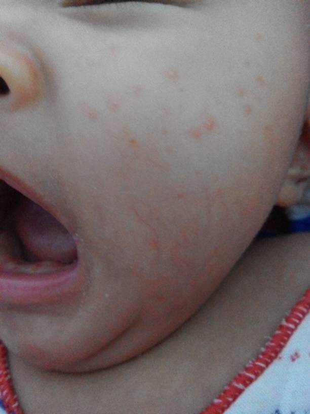 婴儿湿疹,属过敏引起,建议口服抗过敏药如扑尔敏,外用维生素B6软膏或氧化锌软膏 日常生活尽量避免外界刺激物和局部刺激,不抓,不用力揩擦,不用热水肥皂烫洗.