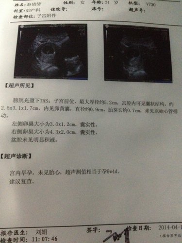 怀孕7周5天,血HCG45060;孕酮20.03;B超示如图,请问胎儿发育异常可能性有多大!??四