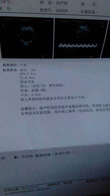 怀孕33周了,但B超显示只有31周是怎么回事啊,而且胎盘已经两级了,宝宝会有问题吗,好担心,大家帮 怀孕33周了,但B超显示只有31周是怎么回事啊,而且胎盘已经两级了,宝宝会有问题吗,好担心,大家帮忙看看吧 点击展开 有点年轻的宝妈 2014-10-13 07:51 为您推荐: 其他回答 你好,就是有偏小两周,但是上下偏差两周是属于正常的范围,只是尽量还是要多补充营养赶上正常的水平是最好的 mi心有心愿 2014-10-13 15:39 相关问题 怀孕32周胎盘为2级,现在已35周加4天最近没有照B超,会提前生吗 我怀孕都37周5了,怎么宝宝还不进胎盘呀,我好担心要刨腹产 怀孕12周hcg82108孕酮26 96 b超胎盘太低,其他正常,为什么hcg那么低啊