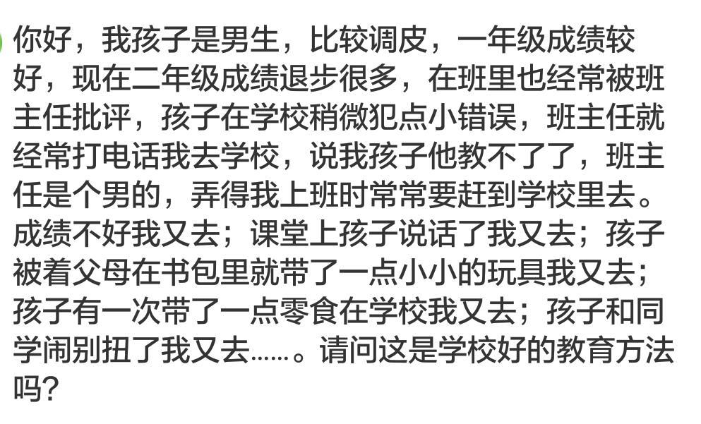这班主任有点太小题大做了!!我以前上学班主任也是这样 动不动就叫家长 这样会造成孩子很厌烦的一种症状 还有老师有点过分了 孩子的教育是从小抓起的 如果菠殊唤总是当众批评 用恶毒的语言孩子会有阴影的!!还有告毫如果同饥用学一起排斥他那你孩子就会很容易内心封闭 以后会变得沉默寡言 不愿与人交流 可以像学校反馈这种现象