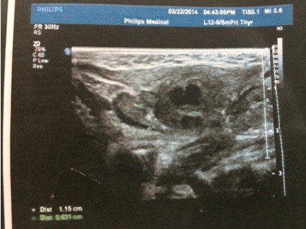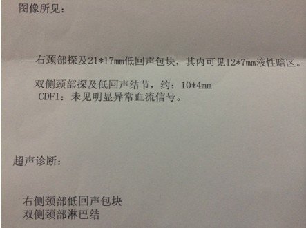 状态很好,挂了3天的消炎水,图片为在2家医院做的B超,求解这个疙瘩是什么,需要怎么样治疗。医生叫继续挂消炎水进一步观察!(备注:B超2描述是:右侧颈部肌层后方探及22*15mm不均质低回声包块,其周围可见数枚低回声结节。 超声印象:右颈部包块伴周围淋巴结肿大。)