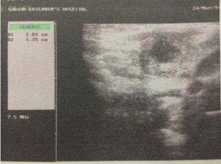 4个月大的婴儿,右颈部耳垂下方(2公分左右)有个硬疙瘩,婴儿无明显异常,吃奶睡觉等等一切正常,精神 状态很好,挂了3天的消炎水,图片为在2家医院做的B超,求解这个疙瘩是什么,需要怎么样治疗。医生叫继续挂消炎水进一步观察!(备注:B超2描述是:右侧颈部肌层后方探及22*15mm不均质低回声包块,其周围可见数枚低回声结节。 超声印象:右颈部包块伴周围淋巴结肿大。) 点击展开 匿名用户 2014-03-24 19:47 为您推荐: 其他回答 病情分析: 这个情况考虑是属于增生的症状, 指导意见: 你好,目前这个问题我建议及时消炎治疗,继续观察吧。 白其雨_6xwx 2014-03-24 21:36 相关问题 大夫您好我脖子右侧耳垂下方6公分左右 十五个月的宝宝耳垂前边脸颊上长了个长了个小疙瘩是怎么回事 十五个月的宝宝耳垂前边脸颊上长了个长了个小疙瘩是怎么回事