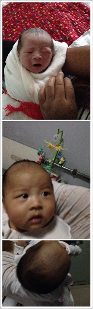 姐姐家的宝宝 这是刚出生的照片和现在的 大家帮忙看看头发 怎么会越来越少呀宝宝现在55天