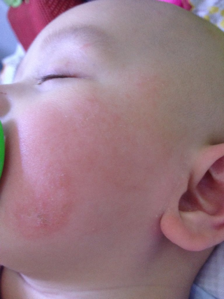 如果宝宝没有添加辅食,排除是过敏的话,应该是湿疹,到医院看看吧?