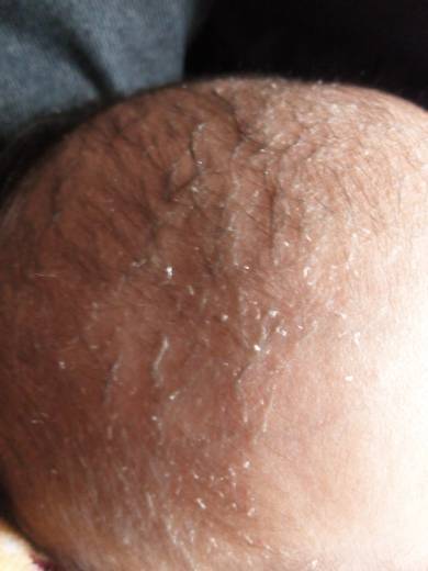 宝宝今天洗澡,洗澡阿姨说是头皮白色的东西脏东西,你们的宝宝有这个吗?怎么处理啊!