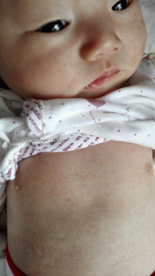 33天的小孩脖子脸上有些小红疙瘩是怎么回事?前两天发烧了,今天不烧了 但是浑身起了些小红疙瘩 33天的小孩脖子脸上有些小红疙瘩是怎么回事?前两天发烧了,今天不烧了 但是浑身起了些小红疙瘩。 点击展开 李雨奇 2015-07-18 17:48 为您推荐: 其他回答 跟我家孩子那时候一样,说是胎带的毒气,没两天就好了, 亲宝闹闹 2015-07-18 19:17 去医院看看 小歆没蜡笔 2015-07-18 18:51 湿疹。。。 乾宝贝 2015-07-18 18:49 不是打预防针的缘故吧,还是去医院看看吧,祝宝宝早日康复 泡泡的媳妇 2015-07-18 18:48 祝宝妈好孕 lfpybl 2015-07-18 18:32 加载更多 相关问题 5岁的小孩,身上起小红疙瘩脸上也有啊,早晨是也有点发烧,疙瘩处也发痒 好像得了霉菌性阴道炎,外阴起初是一小片小红点,后来变成了一个大点的红疙瘩,阴道里面有不多的白带跟豆 我小孩出生14天,在医院几天头部,脸部,颈部起红疙瘩,然后消除了,现在头部,颈部又起了2天了还没下去请指教下