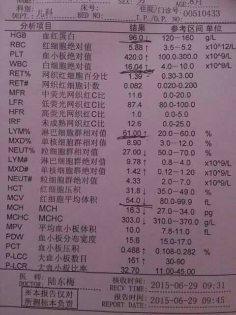 给宝宝去做了血常规 医生说白细胞偏高 血红蛋白96 会是怎么回事?有同样的血常规数值?宝妈们