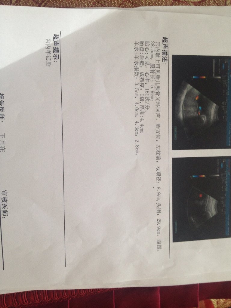 帮忙看一下,医生说胎儿脑袋大,这个严重吗? 帮忙看一下,医生说胎儿脑袋大,这个严重吗? 点击展开 不以物喜,不以 2014-07-24 11:49 为您推荐: 其他回答 你好,是的,你家宝宝的双顶径是有点大了,这个是必须注意下,多吃黄豆可以长股骨。 1966839485是我 2014-07-24 11:51 相关问题 求医生帮忙看看!这个检查结果甲减严重不!现在怀孕3个月!害怕胎儿影响到 32周比超胆囊28 mm*9mm,医生说胎儿胆囊大,让去武汉大医院复查,正常胎儿32周时 医生帮我看一下胎儿成熟了没,我想剖腹产,可以剖了不?谢谢