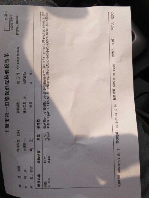 我是四月七号做了造影检查,本来四月二十七来月经后做宫腹腔镜手术的,可在四月三十号验出怀孕,这是五月