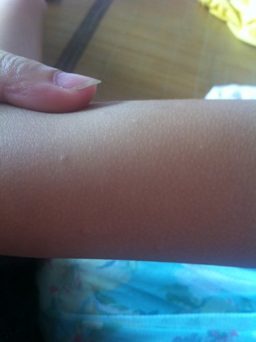 小孩手臂上长这种痘痘,不知道是什么,不痛也不痒 只有一只手臂上有,身上其它地方还没发现有这样的痘痘