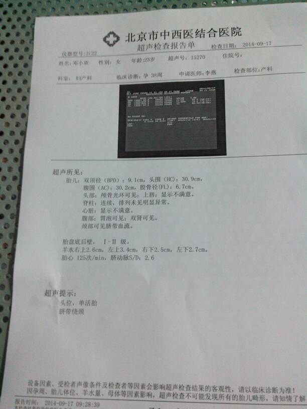 我想知道我宝宝有多大啊 我想知道我宝宝有多大啊 点击展开 ﹌小女Ren、 2014-09-20 22:55 为您推荐: 其他回答 可以问b超医生。 情劫 Sadness 2014-09-20 23:07 你好,看你的这个检查结果,胎儿大小相当于孕36周多,如果你怀孕时间和这个差不多的话可以不需要担心 一直在路上yw 2014-09-20 22:57 相关问题 宝宝三个多月了,我想知道可不可以用背带? 我想知道宝宝的血型 我现在7周,我想知道这个宝宝好不好要几周才可以做B超知道?