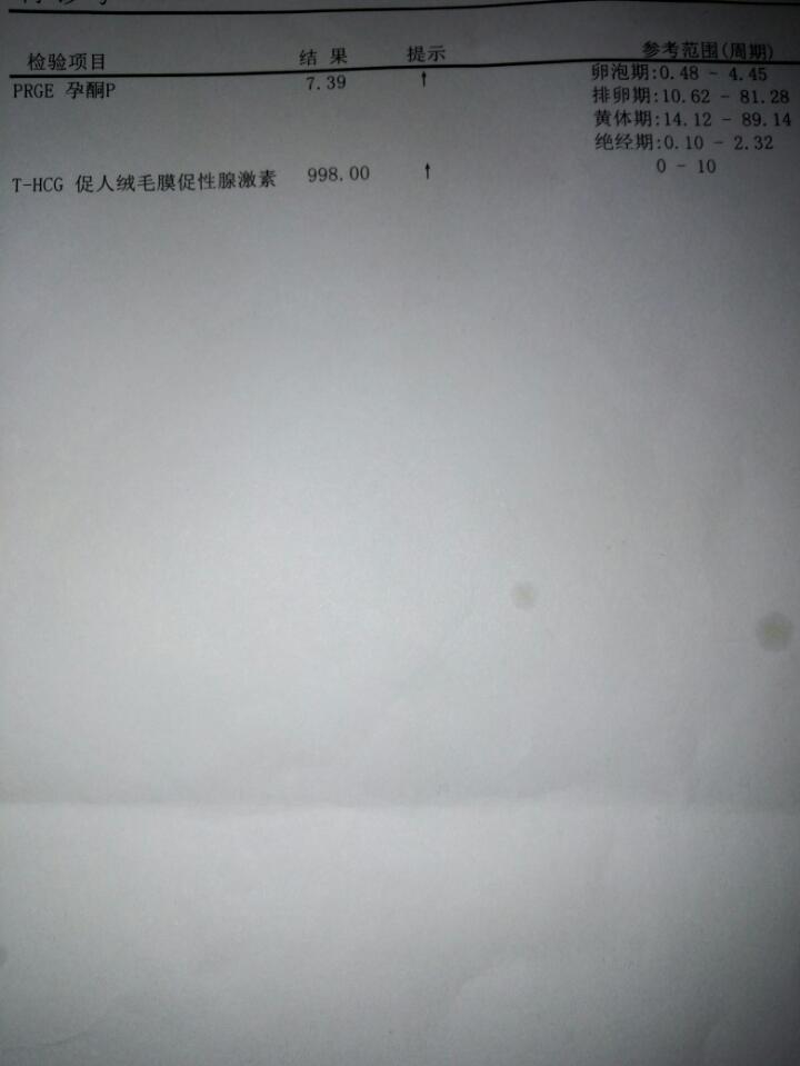 怀孕45天检查,孕酮由38天的15.14降到7.39,还降低了,血hcg由38天的731到45天的 怀孕45天检查,孕酮由38天的15.14降到7.39,还降低了,血hcg由38天的731到45天的998.会不会有啥问题,b超检查医生说像39天的,没有45天,我该怎么办? 点击展开 毛毛虫211 2016-10-12 07:07 为您推荐: 其他回答 你好,如果B超检查在宫内,正常孕酮应该增长,HCG一般隔天翻倍,你这种情况不能排除胎儿发育不良。建议补充黄体酮一周后复查,看有无胎心胎芽。 ŵ607 2016-10-12 07:09 相关问题 怀孕43天,HCG只有731 07,孕酮16 73,正常吗,求助 我现在怀孕40多天,生气大声说话,会影响胚胎发育吗?孕酮和hcG低是生气造成的吗?求答 唐筛结果都是低危,只有free-hcg偏高,严重吗?希望专业的医生看看报告单,拜托!怀孕早期孕酮低