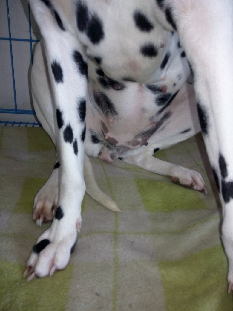 谁能帮我看看狗狗有没有怀孕,这是它第一次配,肚子不见大都55天了…没说的胎动,只有奶头大了,肚