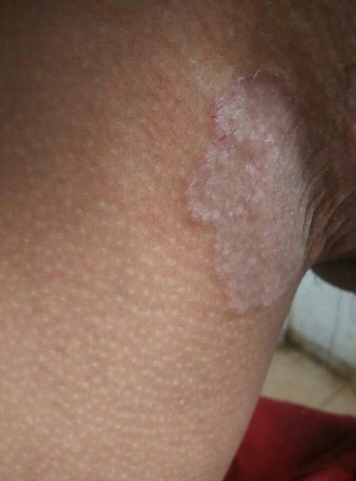 大家好,我是刚结婚,第一次怀孕,最近我发现男朋友下面和大腿之间有一层粗糙的皮,像是什么过敏了一样