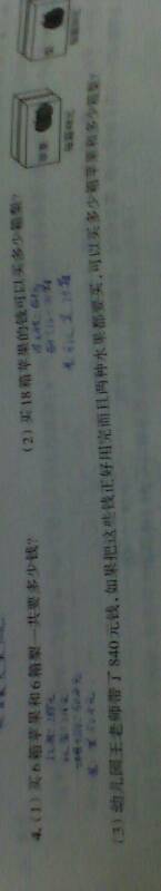 苹果每箱48元,梨每箱36元 幼儿园王老师带了840元,如果把这些钱正好用完而且两种水果都要买 苹果每箱48元,梨每箱36元。 幼儿园王老师带了840元,如果把这些钱正好用完而且两种水果都要买,可以买多少箱苹果和多少箱梨? 点击展开 匿名用户 2014-02-07 08:23 为您推荐: 其他回答 48+36=84 840除以84=10 正好苹果和梨子各10箱 同学您好,如果问题已解决,记得采纳哦~~~您的采纳是对我的肯定~ 祝您策马奔腾哦~ 焦山彤_EiOh 2014-02-07 08:27 相关问题 幼儿园王老师带了840元,如果把这些钱正好用完而且两种水果都要买,可以买多少箱苹果和多少箱梨呢?( 幼儿园的老师给小朋友发水果,一个人一个梨,俩人一个苹果三人一个西瓜,共发了44个 六一儿童节,幼儿园把840个苹果,315个梨,105个桃子,搭配成同样旳水果篮,分给小朋友,最多可