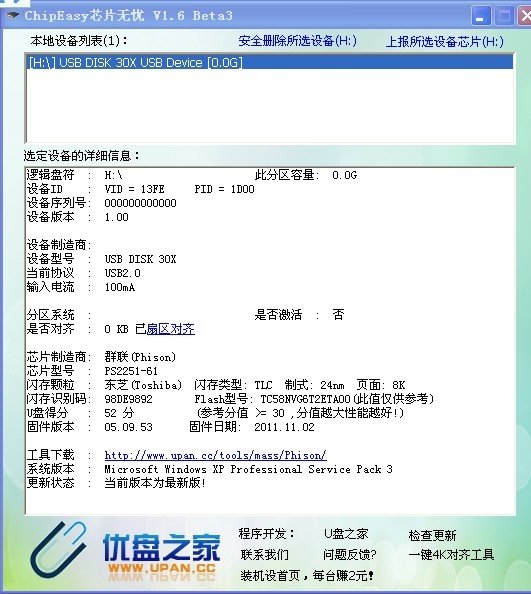 请问一下东芝U盘怎么量产?量产前用什么软件备份数据比较好??下面有我的型号,顺便介绍下量产工具谢谢 点击展开 匿名用户 2020-01-13 06:45 满意回答 到u盘量产网http://www.upantool.com/下载群肆栋患联ps2251-61的量脑做今悟产工具量产就好了。 匿名用户 2020-02-07 08:54 宝宝知道提示您:回答为网友贡献,仅供参考。 相关问题 U盘量产后只量产了一个CDROM,量产后无法恢复为原U盘,量产工具检测不到原U盘 U盘量产后变为了两个磁盘,不是两个分区,现在这个量产工具无法识别了,不过还可以读取磁盘,怎么弄回一个 我一个32G的U盘用量产工具量产,什么都没设置,量产后变成了256M了,到底怎么回事啊,还能复原吗?