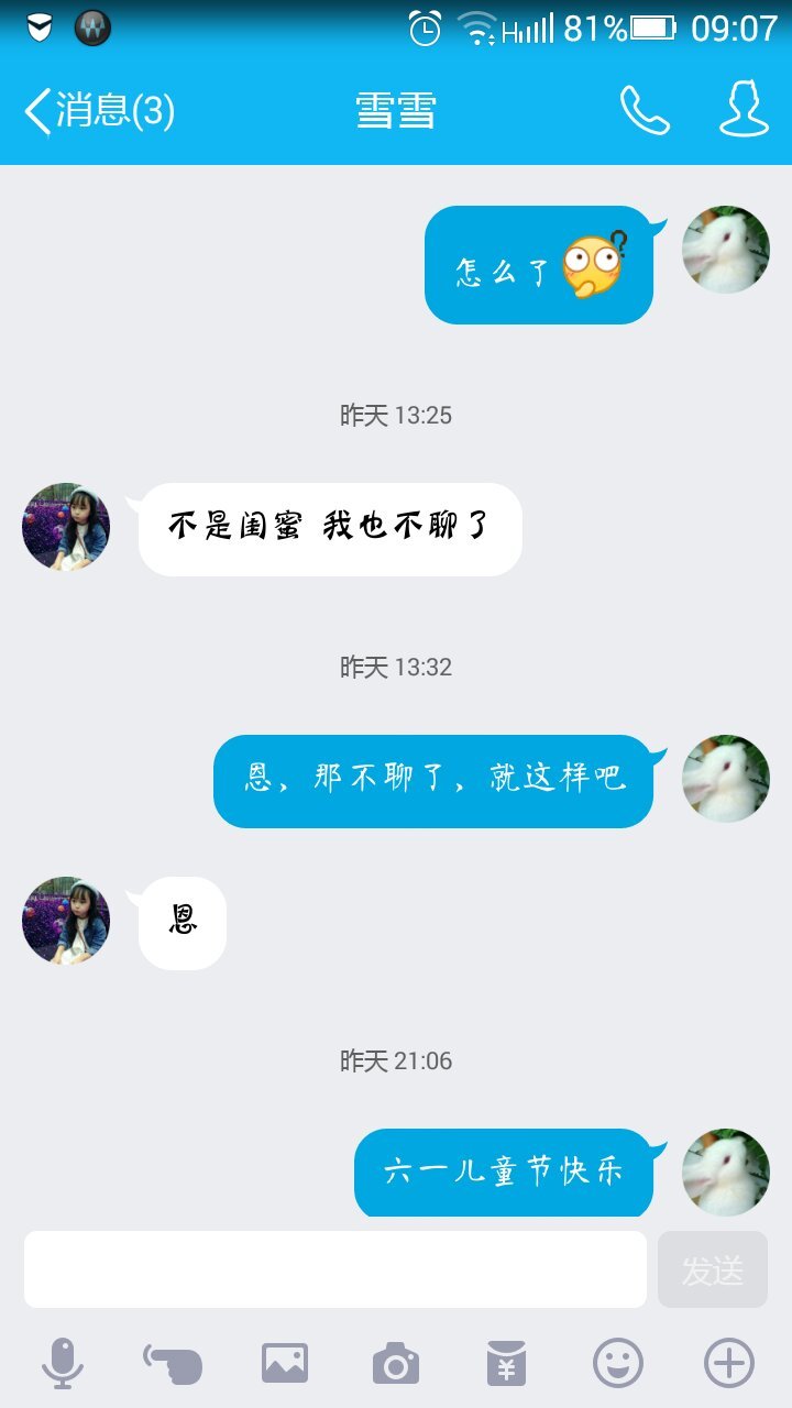 昨天还说不做闺密不聊的,我一问个好还是聊,这女孩啥意思啊,我真的不想做朋友啥的 点击展开 匿名用户 2016-06-01 09:24 满意回答 感觉都当了玩笑在听一样的 母婴用户74101672 2016-06-01 09:27 宝宝知道提示您:回答为网友贡献,仅供参考。 为您推荐: 其他回答 现实点 匿名用户 2016-06-01 09:28 不是就不是呗 匿名用户 2016-06-01 09:26 相关问题 有个女孩第一次问她要号码被拒绝后隔了3个月后遇到她和她闺密逛街两个在笑者聊我聊我什么意思? 如果一个女孩一直把你当成闺密最相信的人,可突然有一天你们喝醉了还发生关系,以后该怎么办,还能做朋友 我长相不怎样,但是很多人爱和我做朋友 女人缘也很好,我也有喜欢的女孩 但她们都把我当做男闺密一