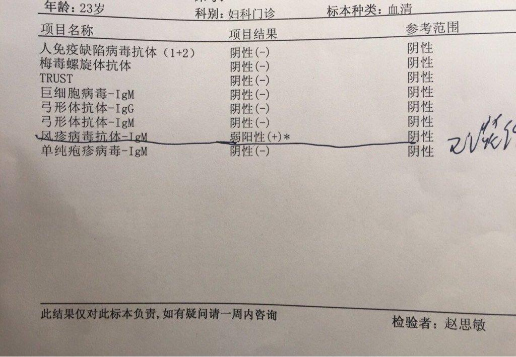 去医院血检查出风疹病毒抗体-Igm 弱阳性(+)*是不是很严重 怀孕50天昨天查的 到底严不严重