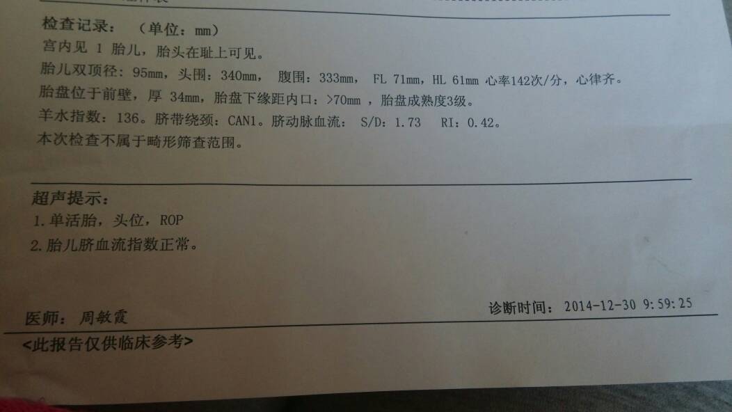 哪位宝妈妈可以帮我算一下我宝宝有多重呀…急急急急 哪位宝妈妈可以帮我算一下我宝宝有多重呀!…………急急急急 点击展开 134*****067_Yifo 2014-12-30 13:29 为您推荐: 其他回答 从此次检查结果看,胎儿的双顶径是95mm,按此推算宝宝体重约3350克(存在正负15%的误差)。 wzlzx520 2014-12-30 16:07 祝宝妈好孕 流年。。 2014-12-30 15:20 七斤左右! 116450630. 2014-12-30 14:25 七斤左右吧 夏日雨露 2014-12-30 14:03 记得这几天多吃点 炫魅依设 2014-12-30 13:36 加载更多 相关问题 胎儿现在有多重呢,帮忙算下,宝妈们 怀孕32周 孕妈体重125算瘦还是胖 那宝宝会有多重 36周医生说头偏大,正常吗?胎儿会不会有什么?现在宝宝有多重?会算的宝妈帮忙算下