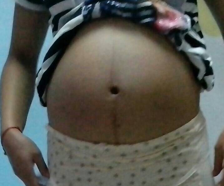 肚子圆圆的就是女孩,肚子尖尖的是男孩,肚脐眼外凸是男孩