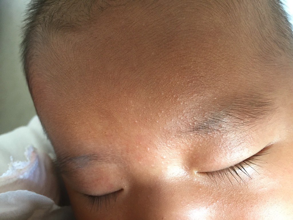 我家宝宝额头上,眼皮,两边脸颊长了好多这种小坨坨,是湿疹还是痱子啊 要怎么护理才会消退? 我家宝宝额头上,眼皮,两边脸颊长了好多这种小坨坨,是湿疹还是痱子啊。要怎么护理才会消退? 点击展开 ⊙ω⊙_aiFO 2015-11-05 13:02 为您推荐: 其他回答 不像湿疹, 宣雅麻麻 2015-11-05 14:47 你给宝宝抹的郁美净 雯妞儿 2015-11-05 14:28 去医院看看 小铭♡同学 2015-11-05 13:55 热不吧,别穿太厚 阿佳。 2015-11-05 13:53 去医院看看吧 爱堡利 2015-11-05 13:28 加载更多 相关问题 不宝宝脸颊上额头上都密密麻麻的小疹子一样的,屁股沟沟两边也是一样,请问是湿疹吗?怎么护理呢? 现在天气热了,我宝宝5个月,额头和脸颊已经出现了热痱子,我应该怎么做能够最好最有效的减轻她的瘙痒感 我家宝宝一个月六天,去医院看说是脸上长了湿疹,配了蓝润医用愈肤生物膜,擦了后额头很红,眼皮肿起来了