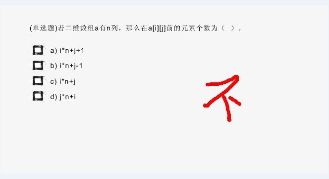 a前面有i行,所以就有i*n个元素,第i行之前有j个元素,不包括a,这个元素。 答案应该为c,楼主可以举个例子解决这个问题