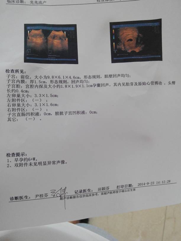 你好,看你的报告已经看到胎心胎芽了,记得定期产检啊,祝你生一个健康可爱的宝宝