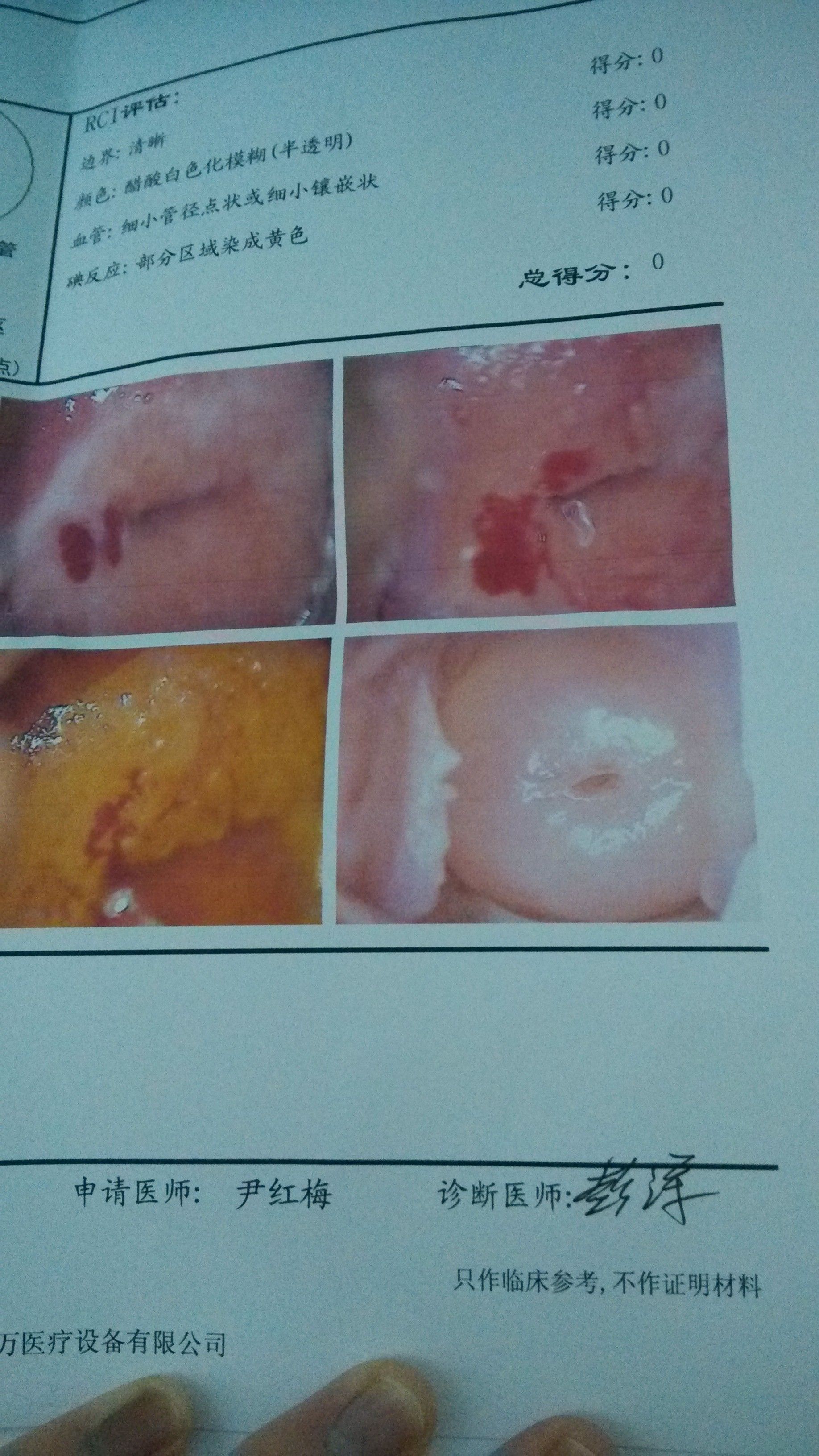 主要病症:白带多,呈豆腐渣样,去医院检查结果显示为宫颈糜烂、宫颈肥大、糜烂面呈红色,涂3%的醋酸呈