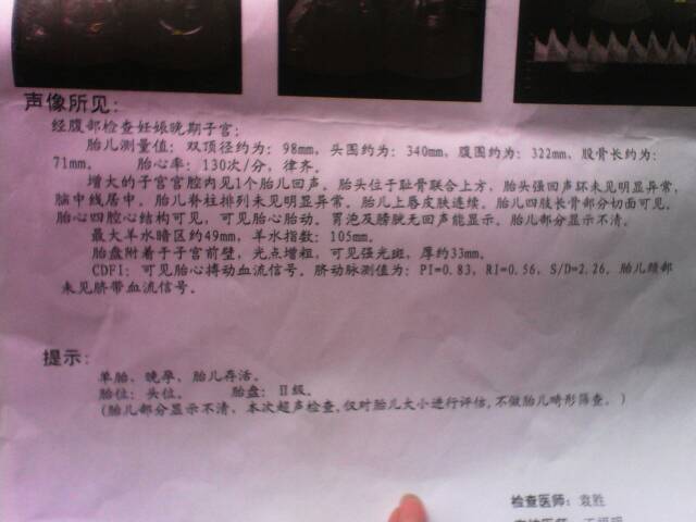 会看的帮我看看宝宝多少斤了,是男是女?头太大了不入盆怎么办? 会看的帮我看看宝宝多少斤了,是男是女?头太大了不入盆怎么办? 点击展开 " 小萱姑凉 ㏕ 2014-12-28 12:38 为您推荐: 其他回答 没事的。不要这么客气 泪水打湿了我的双眼 2014-12-28 23:01 早点休息吧。对孩子不好 泪水打湿了我的双眼 2014-12-28 23:01 恩,但愿顺产 泪水打湿了我的双眼 2014-12-28 23:00 等到最后实在生不下来就只能刨负了 泪水打湿了我的双眼 2014-12-28 22:59 七八斤,剖吧! 陌陌妈咪 2014-12-28 13:27 加载更多 相关问题 医生,帮我看看,宝宝有几斤,入盆了吗? 过预产期一个星期了,到现在都没有反应,急死了,头都入盆了不知道是怎么回事啊,也感觉到宫缩的,宝宝就 预产期1月31日一点也不入盆,还饶一圈,双顶径93股骨70宫高36,胎儿有几斤呢?为什么不入盆呢?