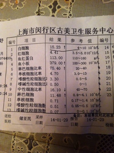 宝宝六个月体检,在街道医院打预防针,打了乙肝还有流脑,打完血液常规检查,白细胞15.23,还有十来 宝宝六个月体检,在街道医院打预防针,打了乙肝还有流脑,打完血液常规检查,白细胞15.23,还有十来项不正常,医生说什么绝对值不高,问题不大。宝宝十天前幼儿急疹,发烧咳嗽。感觉宝宝这两天又有点咳嗽,睡觉会被痰卡住,呼吸重,但是不发烧。请问是什么问题?真的没事吗?请帮我分析一下血液报告。我该怎么办?要去儿童医院急诊吗? 点击展开 匿名用户 2014-01-29 21:09 为您推荐: 其他回答 病情分析: 你现在胡要是感染的原因吧 指导意见: 建议你注意多喝水还有就是吃点消炎药看看吧, 匿名用户 2014-01-29 21:39 相关问题 宝宝上午打了流脑和乙肝疫苗,现在有点低烧,白细胞19 2!医生说和预防针没关系!可是宝宝没有任何其它症状、需要挂针么 尿常规白细胞+1尿胆原+1蛋白质+1,这个有关系的嘛?我查了优生十项和乙肝等等,都是正常的 小孩做血液常规检查,是看白细胞吗,都是正常的,应该没血液病吧,还是流血,医生说是鼻炎,要怎么治啊