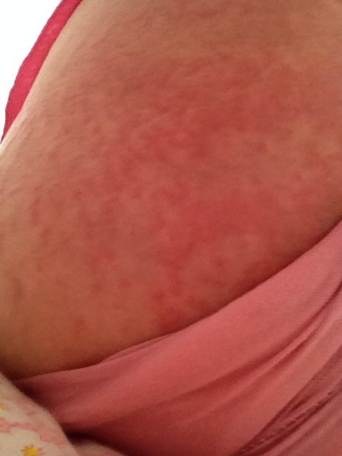 月子期间内 腰以下 脚脖子往上痒痒 一挠一片一片的先起疙瘩 然后疙瘩变成红条 不是热痱子也不是湿疹