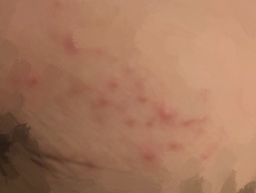 上周来大姨妈脸上留下了这样的痘痘一直下不去 来大姨妈的时候吃了麻辣香锅和麦当劳吃得多 是不是这个原