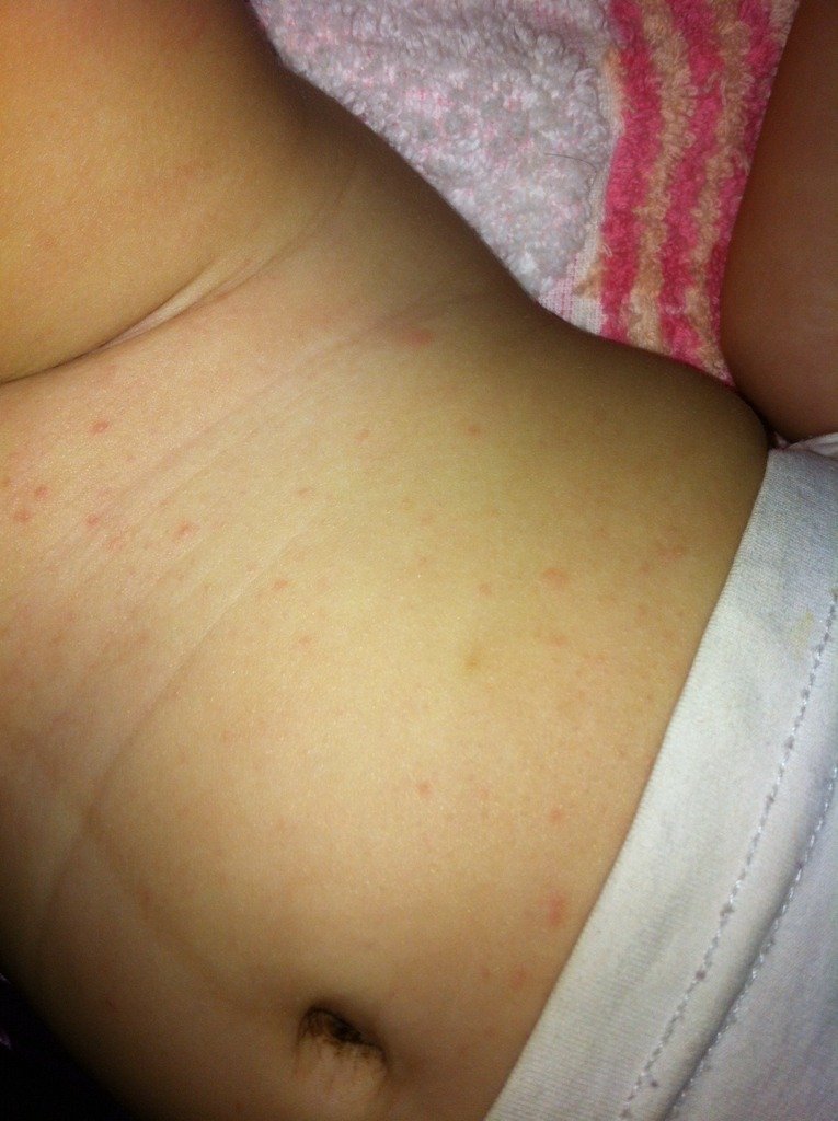 宝宝前几天发烧,不烧之后身上就起了这些小红点,脸上,身上都是,谁能帮我看看这是什么东西