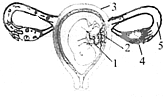 如图为子宫中的胎儿示意图,请据图回答:(1)胚胎发育是从-开始的.胚胎在母体子宫内发育的时间约