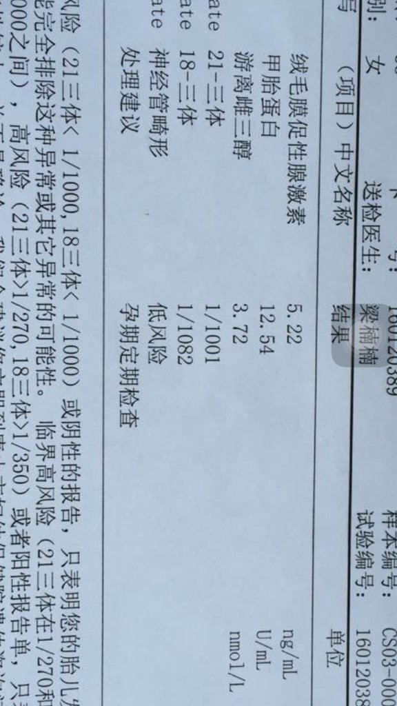 16周孕妇,糖筛检查,第一项和第二项指标有问题吗? 点击展开 匿名用户 2016-01-22 17:03 满意回答 你好,看你兵告的结果都属于低风险,胎儿患病的机率祸称金低。可以孕24-26周行排涌然畸检查。 ź66 2016-01-22 17:30 宝宝知道提示您:回答为网友贡献,仅供参考。 相关问题 产检做糖筛时指标不正常是否就意味着以后胎儿就有问题 孕17周的时候,去做唐筛,医生就问我有没有钙片,我说在吃,之后什么检查都没做,就开了:右旋糖酐铁分 孕妇做糖筛要多久,听说要空腹早上不吃东西饿怎么办