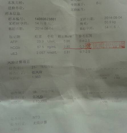 医生们进来帮我看看、应该是早唐筛查、有个标记物高、有问题没?今天产前筛查医生不坐诊