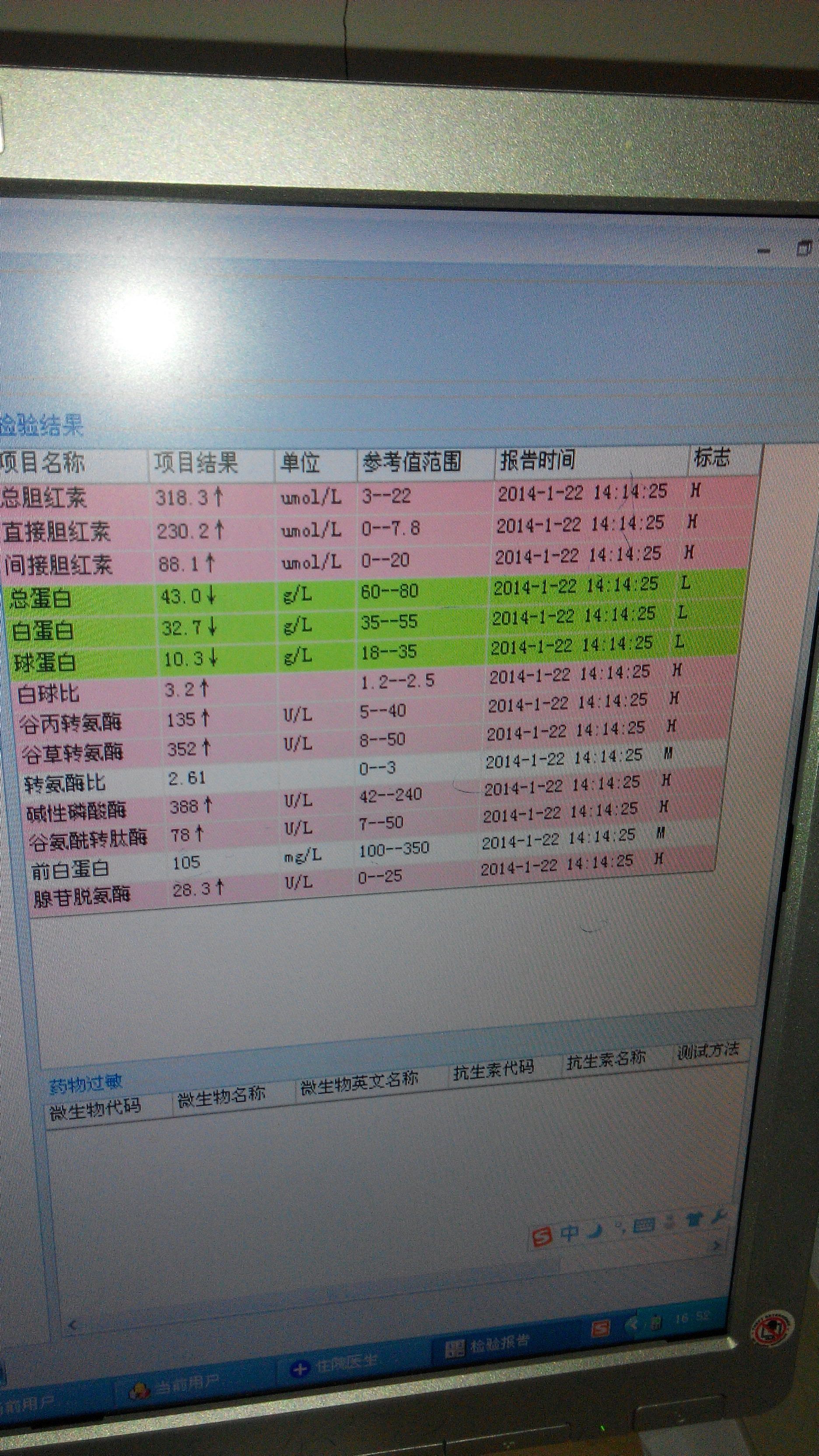 婴儿是2013.12.25日出生女婴 定性是病理性黄疸 具体引发原因不明 黑白色那张是1月19号