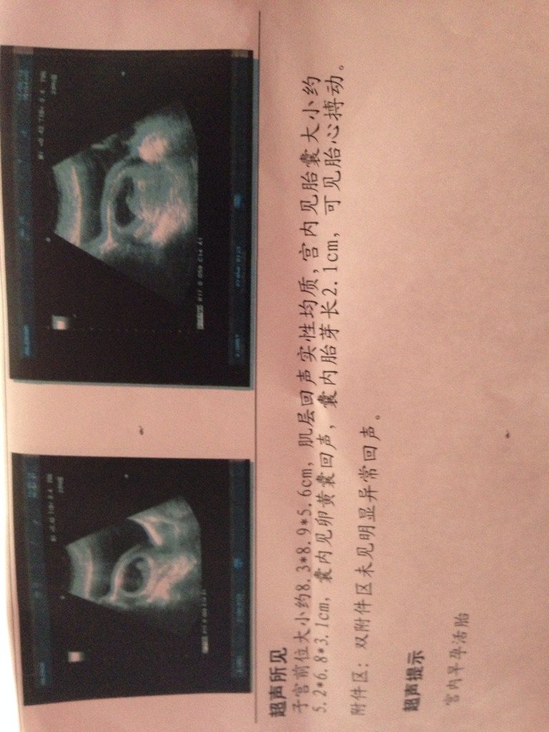 从B超结果看胚胎发育正常大约2个月左右,你可以和末次月经结合一下看是否符合怀孕时间。