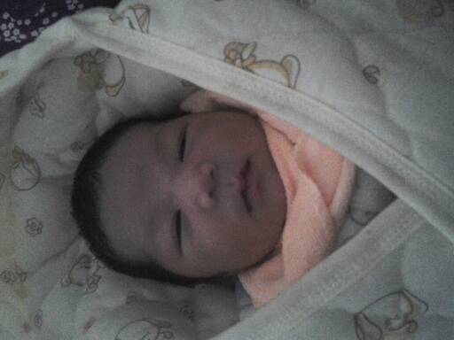 呵呵……习惯了就好了……之前我家宝宝还经常把她的小手缩到肩膀里面呢!……才出生的那几天就把她的小手举起……
