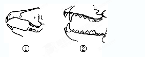 C 该题考查动物的牙齿与食性的关系, ②代表的动物,除了具有门齿和臼齿外,还有发达的犬齿,有锋利的犬荒梨齿,用于撕裂食物,因此是肉食性的, ①所代表的动崭近物,没有犬齿,只有门齿和臼齿,臼齿发达,用于磨碎食物,这是与草急悠叹食性生活相适应的。