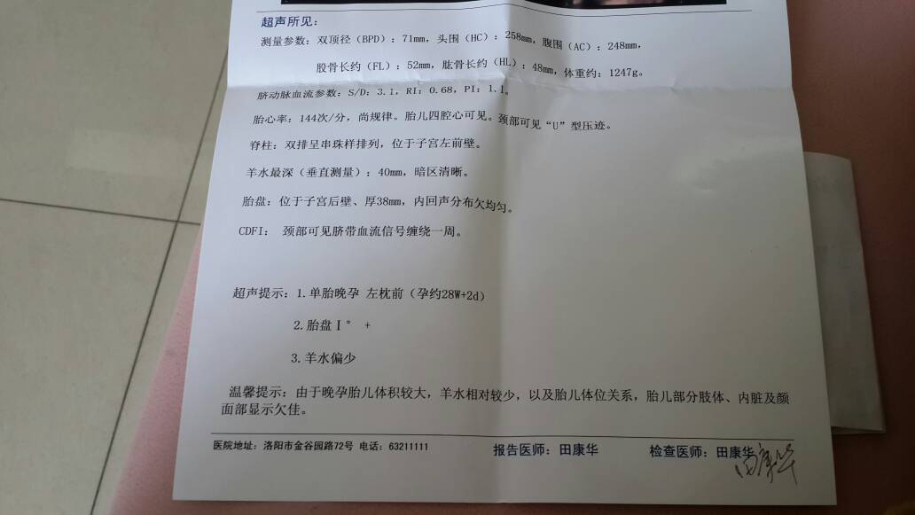 请求哪位医生帮我看看这单子? 请求哪位医生帮我看看这单子? 点击展开 嘉猪麻麻 2014-12-10 11:21 为您推荐: 其他回答 ...... abcb06 2014-12-10 15:15 我听朋友说的多喝豆浆,多喝水。 丿Baby.k|蛋蛋 2014-12-10 11:59 多喝水,,,,, 林糖糖 2014-12-10 11:55 羊水少了,多喝点汤水,随时注意胎动 别哭,我最爱的人 2014-12-10 11:45 我前两天做的28+1,双顶径7,股骨颈5.3,脐带绕颈一周,羊水6.6,你的羊水是偏少了 嘉嘉MM 2014-12-10 11:30 加载更多 相关问题 医生帮我看看这单子,谢了 有医生帮我看看这张单子检查的什么啊?是唐塞吗??? 请医生帮我看看b超单子我能顺产吗?怀孕34周了,刚做完的b超