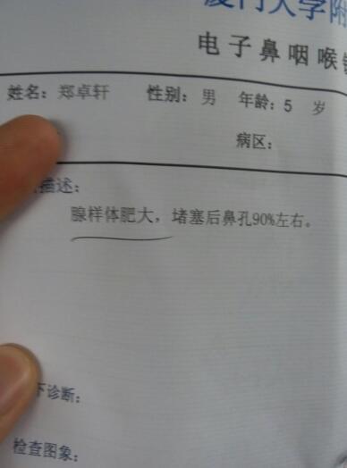 男宝宝5岁了,睡觉鼻孔堵住,张嘴呼吸,今天检查鼻镜:腺样体肥大,堵塞后鼻孔90%,医生建议手术! 男宝宝5岁了,睡觉鼻孔堵住,张嘴呼吸,今天检查鼻镜:腺样体肥大,堵塞后鼻孔90%,医生建议手术!怎么办?要手术吗?有副作用吗? 点击展开 匿名用户 2016-10-24 10:31 为您推荐: 其他回答 必须手术,否则随时有窒息危险,特别是睡觉时。 植向秋_nXYc 2016-10-24 10:43 相关问题 7岁半小儿腺样体肥大,堵赛后鼻孔1/2,是否需要手术治疗?晚上睡觉呼吸粗,爱爬着睡觉,仰睡时有时有鼾音 宝宝腺样体肥大,睡觉打鼾,所以觉睡不好,并且宝宝免疫力低,容易感冒发烧 以前偶尔有鼻炎发作,鼻塞,一侧鼻孔难以呼吸,晚上睡觉都睡不好,怀孕7周,不知如何是好,求助!!!