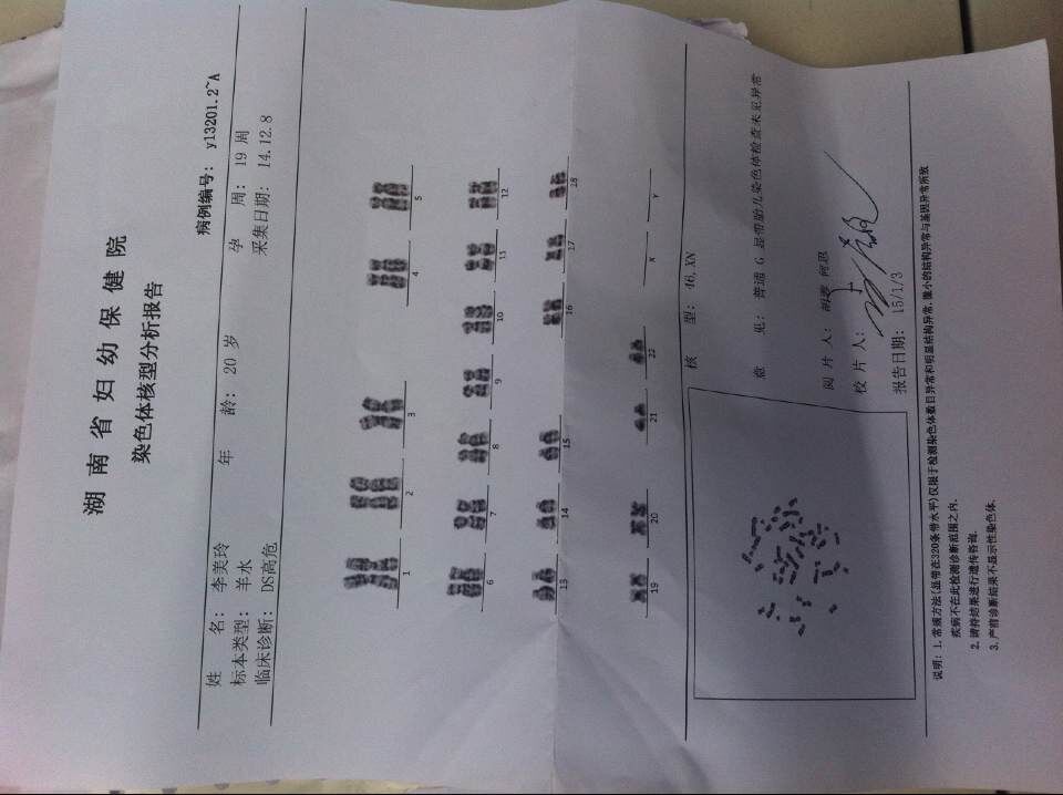 羊水穿刺医生染色体核型分析报告没看懂.求医生解释下 唐氏筛查高危所以去做了羊水穿刺..染色体核型分析报告..孕周19周...临床诊断DS高危..总共有22条..核型46.XN ..意见.普通G显带胎儿染色体检查未见异常.. 请问医生..孩子会不会是唐氏宝宝啊??求教..现在孩子有5个月了... 点击展开 匿名用户 2015-01-08 19:33 为您推荐: 其他回答 你好,看结果是正常的,胎儿没有21三体综合症,即唐氏综合症。 李丹阳2014 2015-01-13 22:28 相关问题 我做羊水穿刺的染色体核型分析报告是:G带核型:mos 45,X[4]/46,XY[22] 我想问下是什么意思,有什么问题? 羊水穿刺结果出来,医生说染色体不好,宝宝要做引产,可我今年已经37岁了,去年刚流了一个,真想保住 上个宝宝是羊水多,做脐带穿刺说染色体有问题 八个月引掉了,我想半年后在要宝宝,还会向上一个宝宝一样