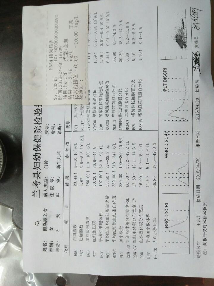 今天宝宝出生3天了,下午发现背部有一块红起了跟粉刺一样的痘痘,医生让化验结果,请专家帮忙看看这结果问提严重吗?谢谢! 今天宝宝出生3天了,下午发现背部有一块红起了跟粉刺一样的痘痘,医生让化验结果,请专家帮忙看看这结果问提严重吗?谢谢! 点击展开 159*****356_2no4 2016-05-04 10:29 为您推荐: 其他回答 不清楚,, 慧,嘉, 2016-05-04 23:16 化验结果都写没事了。 150*****468_fDz7 2016-05-04 22:54 祝健康.. 云云宝贝乐乐 2016-05-04 22:29 咨询医生。 懵懂的人生 2016-05-04 22:21 ..... 佳慧妈妈! 2016-05-04 21:24 加载更多 相关问题 胸口和背部容易长粉刺及痘痘该怎么做? 面部有闭口痘痘粉刺红红的怎么解决 脸上总是会不停的长痘痘和粉刺而且毛孔粗大我该怎么办
