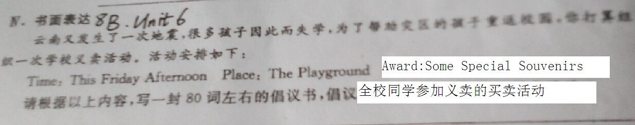 Yun Nan has a bad earthquake. Children lost their family. Thay are not able to go to school any more. Old men lost their son and daughter. Tear was full of the city. I am going to take an event to sell things to raise money. The event start on the playground this Friday afternoon. I hope everyone will join and sell some special souvenirs. Or you can sell your toys. No matter what you sell, we raise money for the citizen in Yun Nan. I am looking forward to your joining.