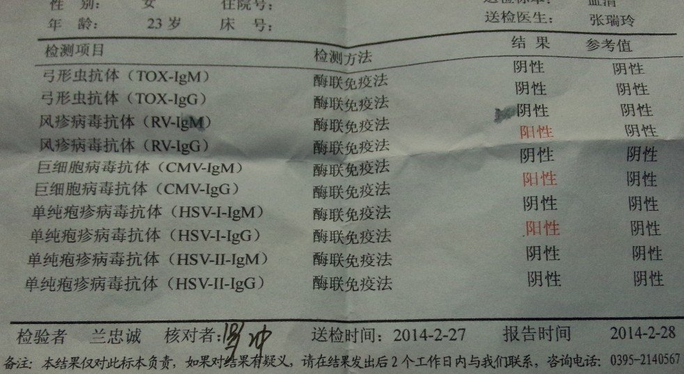 流产一个月检查风疹病毒巨细胞病毒单纯疱疹病毒呈阳性